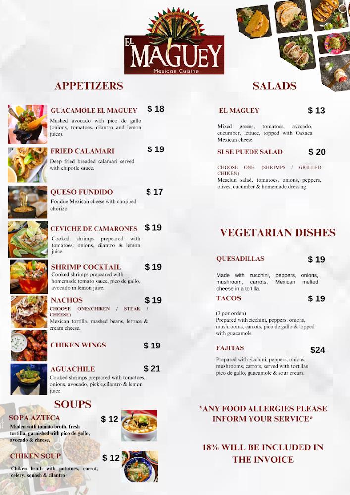 El Maguey's menu features a diverse selection of traditional Mexican dishes. Start with appetizers like queso fundido and crispy fried calamari. The main courses offer delicious options, including sizzling fajitas and comforting chilies en nogada.